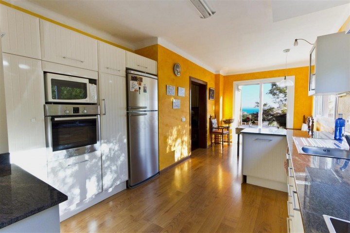 Approx.295 m2, large living room with fireplace, furnished/equipped kitchen, 5 doble bedrooms, wardrobes, 4 bathrooms, parket floors, cold/hot air conditioning, heating, terrce, porch, parking place, sea views.